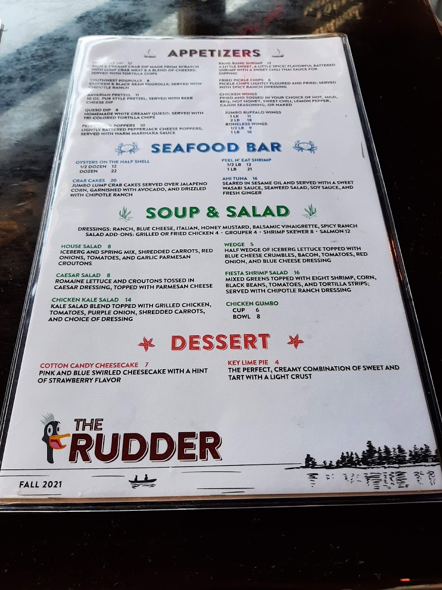 Welcome to The Rudder, a delightful lakeside restaurant located at 126 River Rd, Hendersonville, TN. This gem offers a diverse menu that caters to all palates, from light salads to hearty comfort food. Start with their Hot Crab Dip or Bang Bang Shrimp, showcasing a perfect blend of flavors and textures. For a heartier option, the Nashville Hot Chicken Salad packs a punch with its fiery kick, while the Mahi Mahi Salad provides a refreshing taste of the Caribbean. Don't miss out on their decadent desserts like the Five Layer Chocolate Cake and Lemon Meringue Pie, perfect to conclude your meal. Customers rave about the friendly atmosphere and attentive service, making The Rudder a great spot for family gatherings or a fun night out. Whether you arrive by boat or by car, your taste buds are in for a treat!